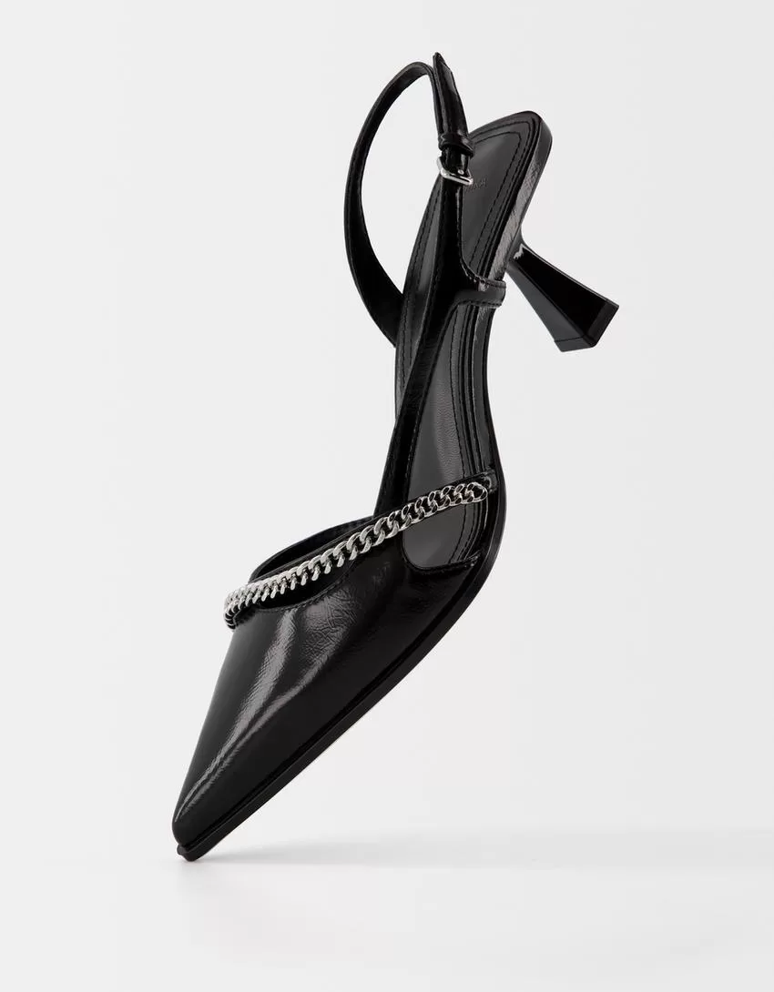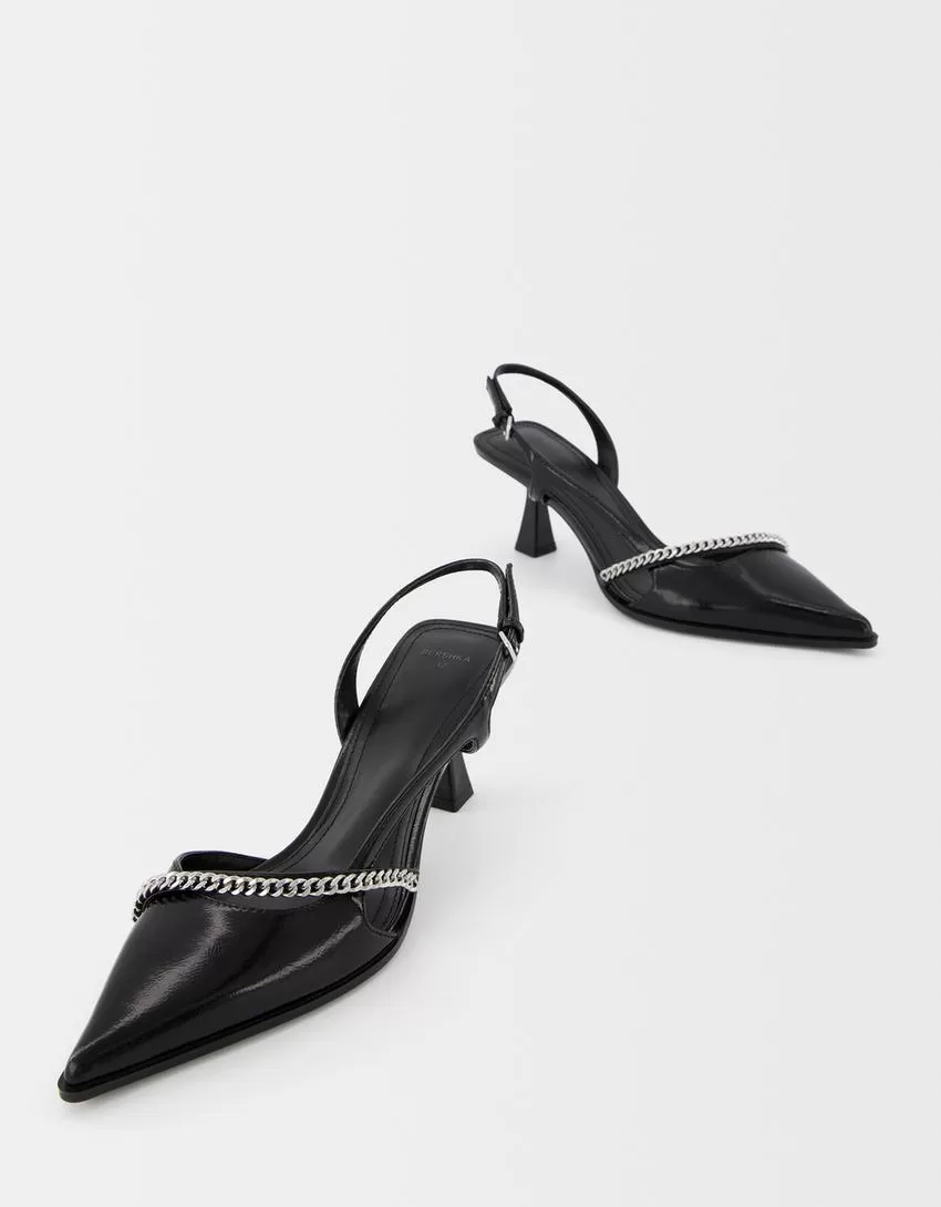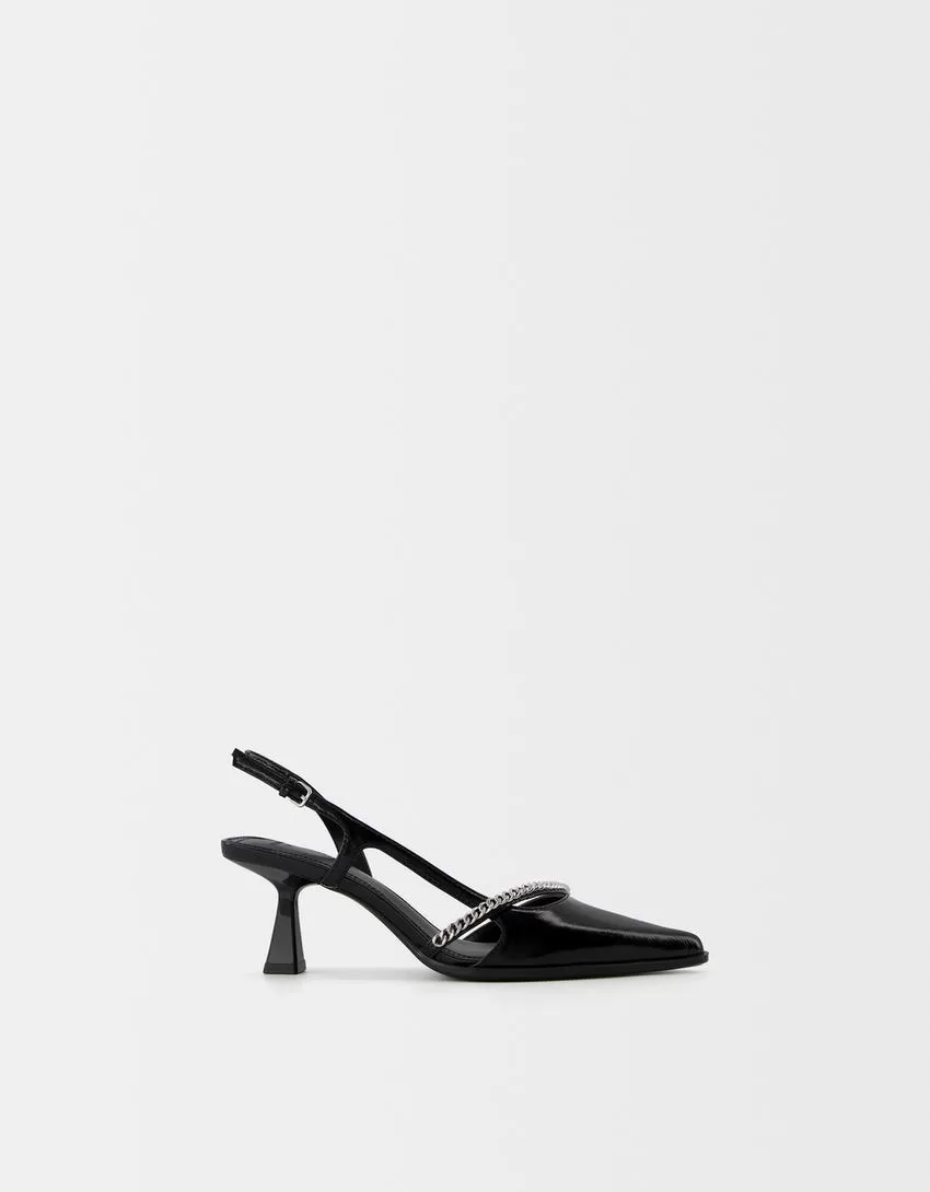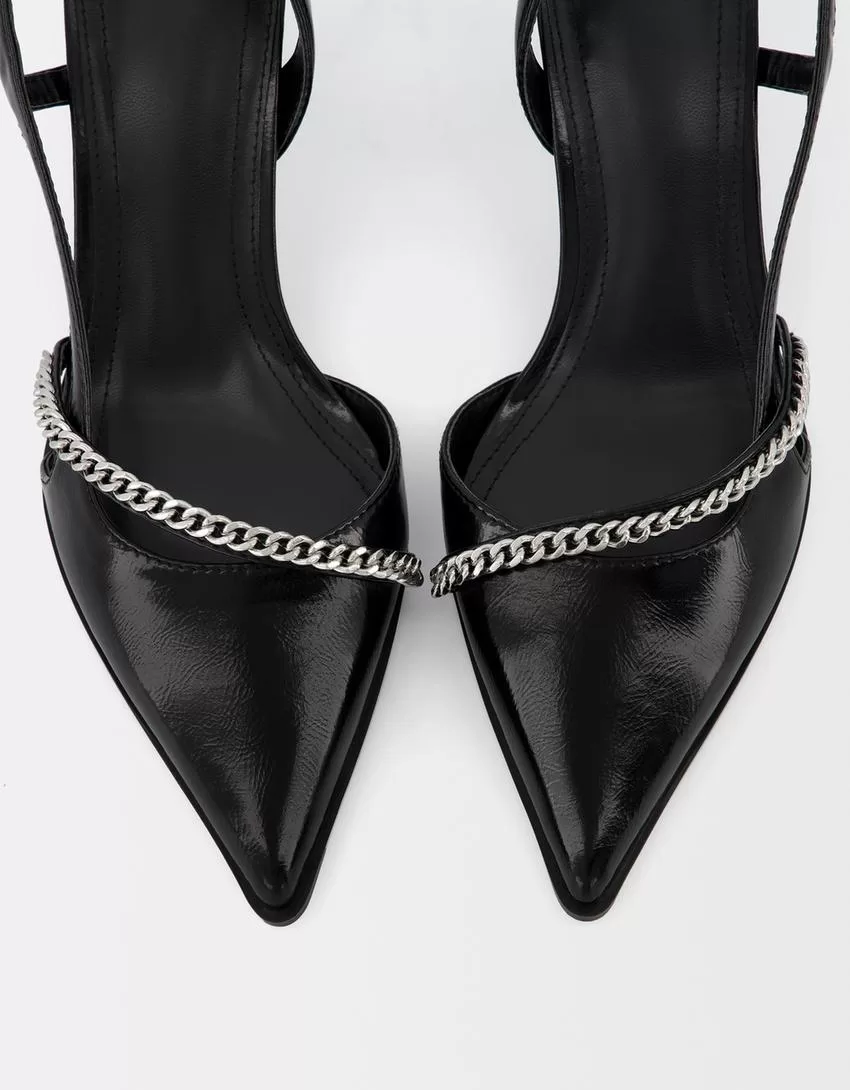 Zapatos de tacón kitty con detalle de cadena BLACK
